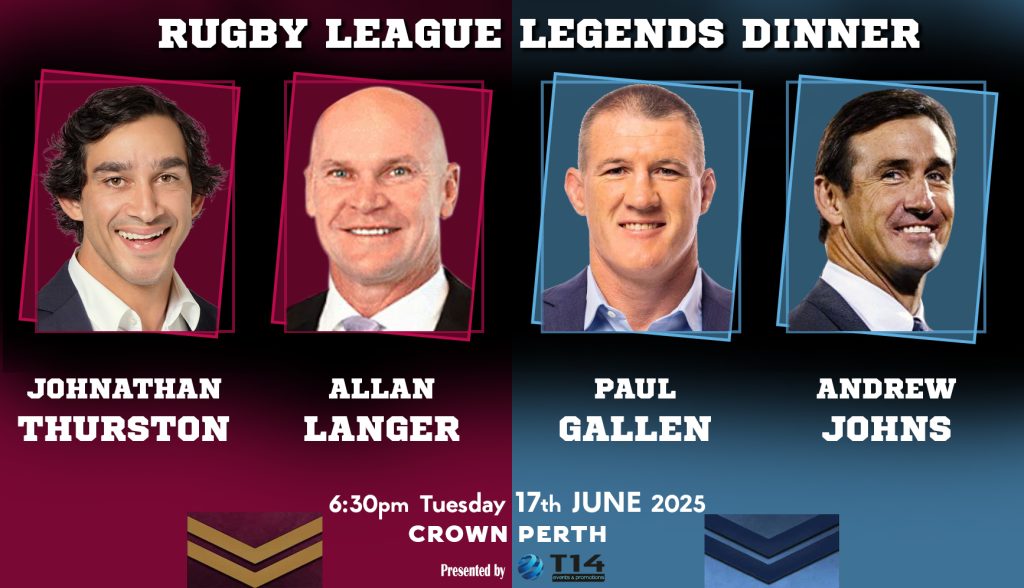 The GREATEST Rugby League Dinner ever assembled. LIVE on stage the night before State of Origin Game 2 in Perth!