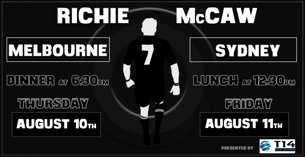 Dinner with All Black Legend Richie McCaw at the Grand Hyatt Melbourne, hear Richie’s thoughts on Business, Life and Rugby.
